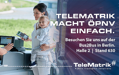 Vom 15. bis 16. April dreht sich auf der Bus2Bus 2026 auf dem Berliner Messegelände alles um die Zukunft des Busverkehrs. Die von NahverkehrsPraxis als Medienp ...