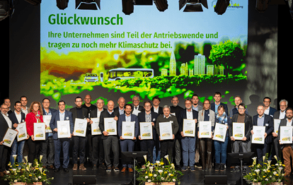 Mit der Urkunde für die Antriebstransformation würdigt der Verband das besondere Engagement der Mitgliedsunternehmen bei der Umstellung ihrer Fahrzeugflotten auf batterieelektrische Antriebe und beim Aufbau der notwendigen Ladeinfrastruktur.