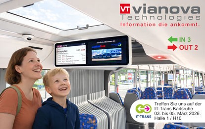 Der Vorteil: Komplexe Schnittstellen zwischen den unterschiedlichen Gewerken entfallen. Die Verkehrsunternehmen profitieren von einfacher Integration, geringerem Wartungsaufwand, hoher Systemstabilität sowie reduzierten Betriebs- und Lebenszykluskosten. Daher sind die Vianova Komplettsysteme bereits bei vielen Bus- und Bahnherstellern gelistet.