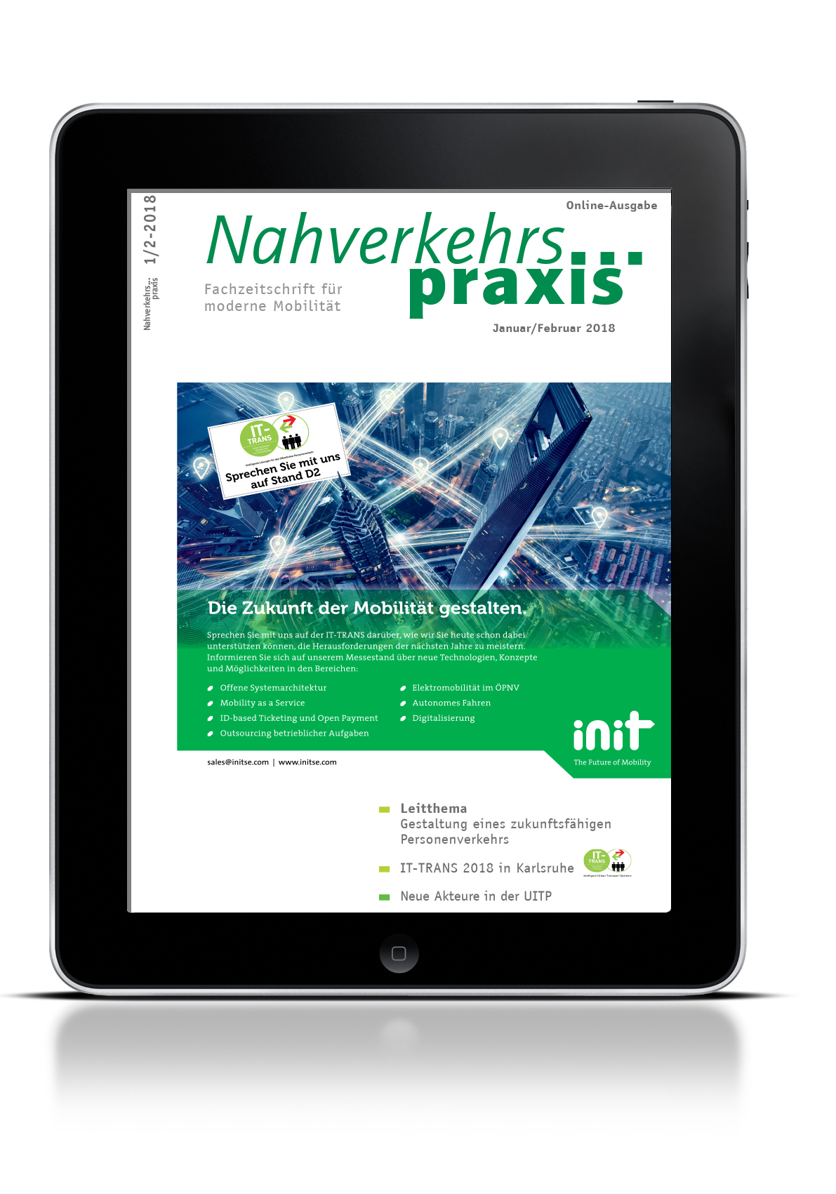 In der Mai-Juni Ausgabe der Nahverkehrs-praxis wird das Leitthema "Digitalisierung des Verkehrs" behandelt. Der öffentliche Nahverkehr muss die Chancen der Digitalisieru...