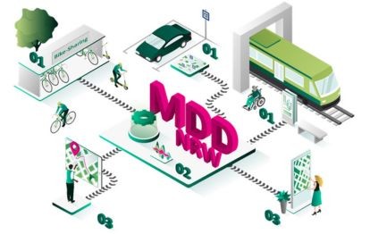 Insgesamt wurden bis dato mit über 15 landesweit und regional tätigen Sharing-Mobilitätsdienstleistern (beispielsweise Voi, Lime, Dott, Bolt, Münsterlandrad, CarSharing Community etc.) Verträge geschlossen. Über die MDD NRW sind beispielsweise Informationen wie Standorte, Verfügbarkeit und Preise von über 60.000 Sharing-Fahrzeugen (Stand Oktober 2025) abrufbar. Weiterhin wurden die bestehenden landesweiten Hintergrundsysteme der ÖV-Branche miteinander vernetzt, um eine verbundübergreifende Reisekettenplanung zu ermöglichen. Hierzu gehören die Hintergrundsysteme für Fahrradabstellanlagen „DeinRadschloss“ und „radbox.nrw“ sowie der go.Rheinland-Infrastrukturatlas und die VRR-Mobilitäts- und Infrastrukturplattform.