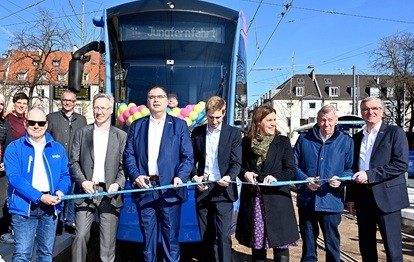 Die Münchner Verkehrsgesellschaft (MVG) hat den ersten Bauabschnitt der Tram-Westtangente in Betrieb genommen. Am Samstag, 28. Februar, haben Bürgermeister Dominik Krause und Bürgermeisterin Verena Dietl in Vertretung des Oberbürgermeisters gemeinsam mit MVG-Chef Ingo Wortmann und Mobilitätsreferent Georg Dunkel die neue Trambahnlinie 14 eröffnet. Ab sofort fährt die Tram 14 über den neuen Teilabschnitt zwischen Fürstenrieder Straße und Ammerseestraße tagsüber im 10-Minuten-Takt, abends ab 22 Uhr und in den frühen Morgenstunden alle 20 Minuten.