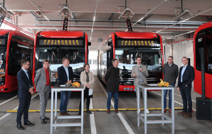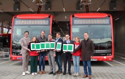 Mit 22 neuen E-Bussen und einem zweiten E-Bus-Port im Betriebshof hat die Freiburger Verkehrs AG (VAG) einen wichtigen Schritt auf dem Weg zum klimaneutralen Linienbetrieb bis 2030 gemacht. Die Fahrzeuge fahren mit 100-prozentigem Ökostrom und sind deutlich leiser als Dieselbusse.