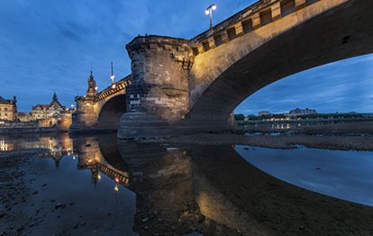 Links: Liebfrauenkathedrale in Antwerpen, rechts: Augustusbrücke in Dresden (Fotos: Serge Brison für WE-EF / Frieder Blickle für WE-EF).