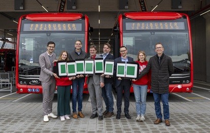 Mit 22 neuen E-Bussen und einem zweiten E-Bus-Port im Betriebshof hat die Freiburger Verkehrs AG (VAG) einen wichtigen Schritt auf dem Weg zum klimaneutralen Linienbetrieb bis 2030 gemacht. Die Fahrzeuge fahren mit 100-prozentigem Ökostrom und sind deutlich leiser als Dieselbusse.